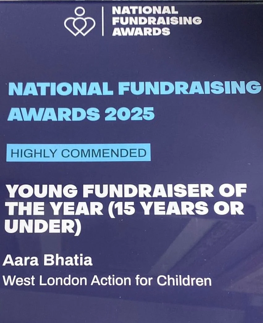 It is with such pride that we share that our superstar young fundraiser, 14-year-old Aara Bhatia, was highly commended in the Young Fundraiser of the Year category at this year’s National Fundraising Awards, held by the Chartered Institute of Fundraising.