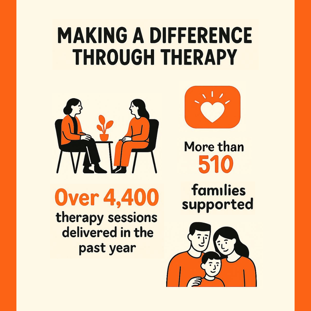 Our team (pictured below) continue to provide a vital lifeline locally. Last year they offered 4400 therapeutic sessions giving children, young people, and their families a safe space to be heard, to heal, and to find practical strategies to navigate these difficult times. Thank you for standing with us in this essential work.